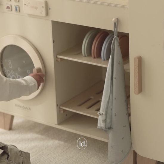Let your little one wash and dry with the Limited Edition Little Dutch Wooden Washing Machine.