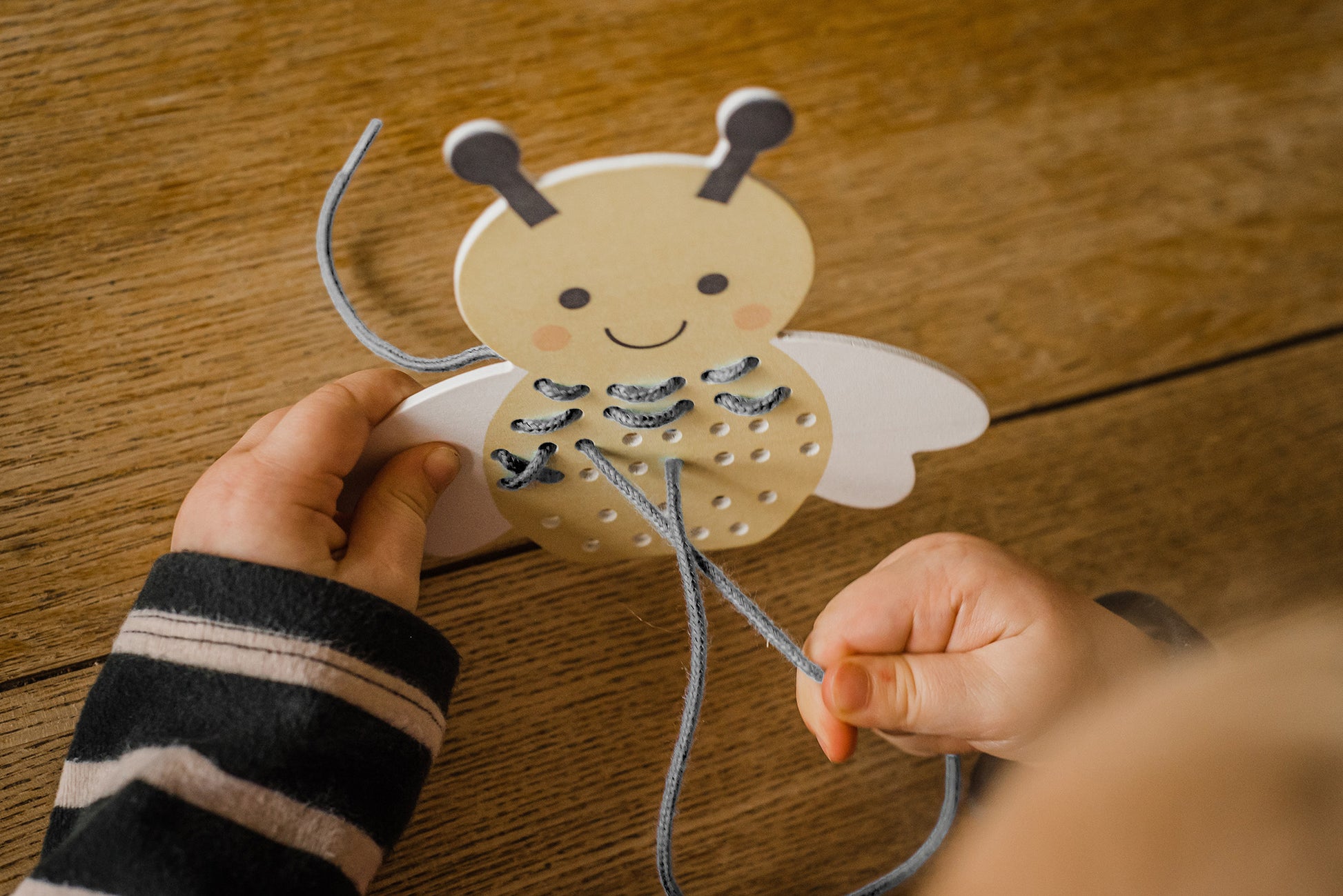 Encourage littles ones creativity with this lovely honey bee stitching kit. The set contains a honey bee wooden cards & lace, perfect for learning simple embroidery stitches & developing fine motor skills.