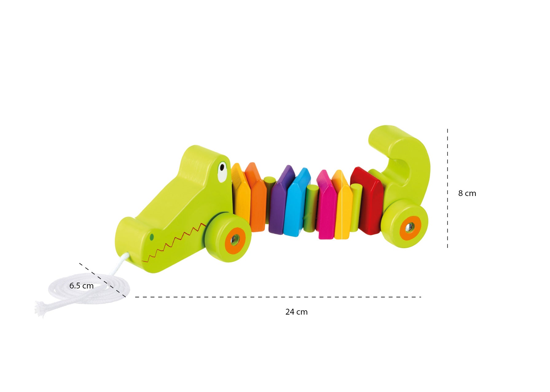 Painted in bright colours, this cute crocodile will follow you around as you pull him along. Perfect to encourage those first steps.