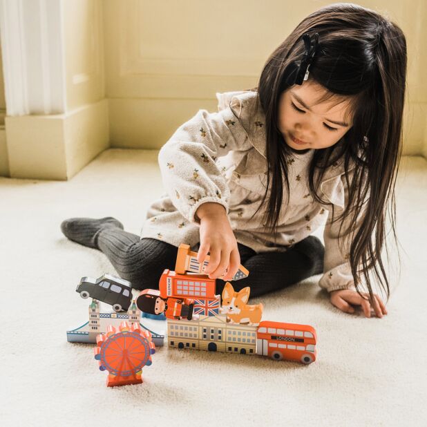 This 10-piece wooden stacking game features icons of London such as ‘Big Ben’, Buckingham Palace, a Black Cab and red Telephone Box. presented in a cotton bag and made from eco-friendly wood and packaged with recyclable materials, it’s a plastic-free choice.