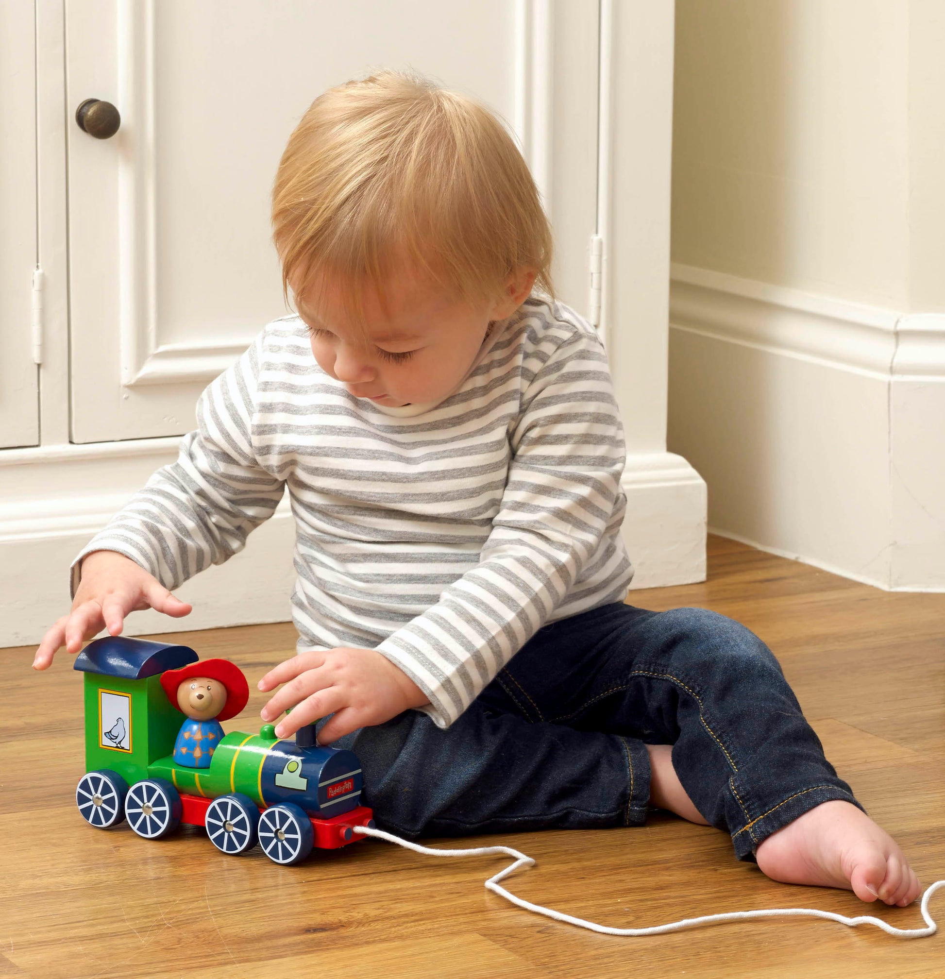 Paddington can be removed from the train for that extra bit of play! Painted in bright colours, this is the classic children's wooden pull along is perfect for any Paddington fan!