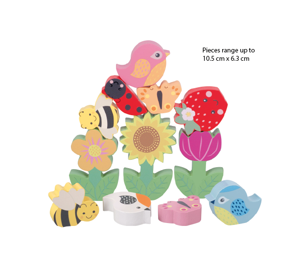 A lovely set of beautifully coloured wooden pieces from a spring garden, including flowers, butterflies, birds & more!