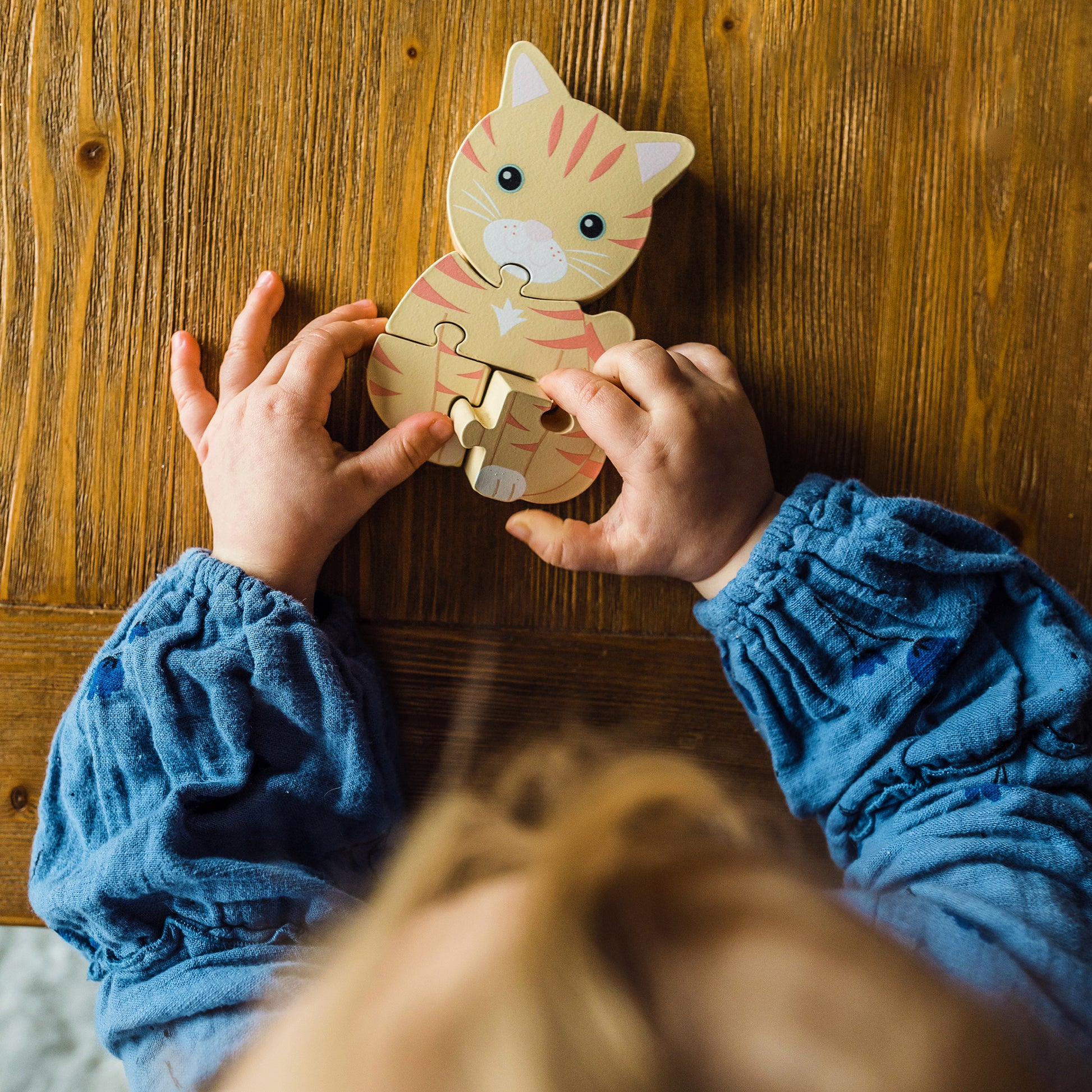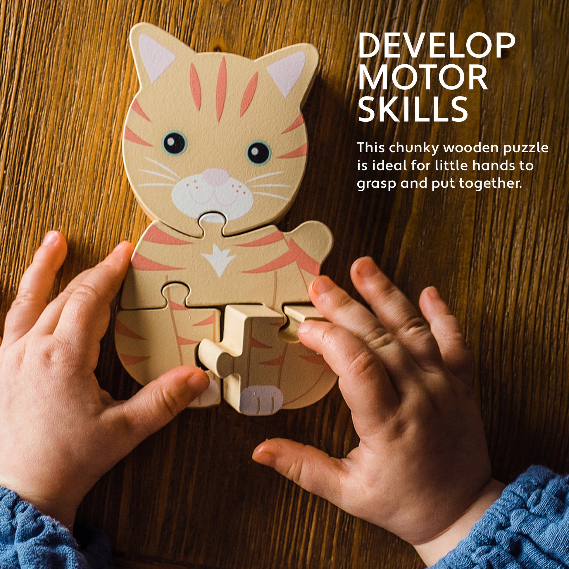This chunky wooden cat puzzle is ideal for little hands to grasp, and fun to put together.