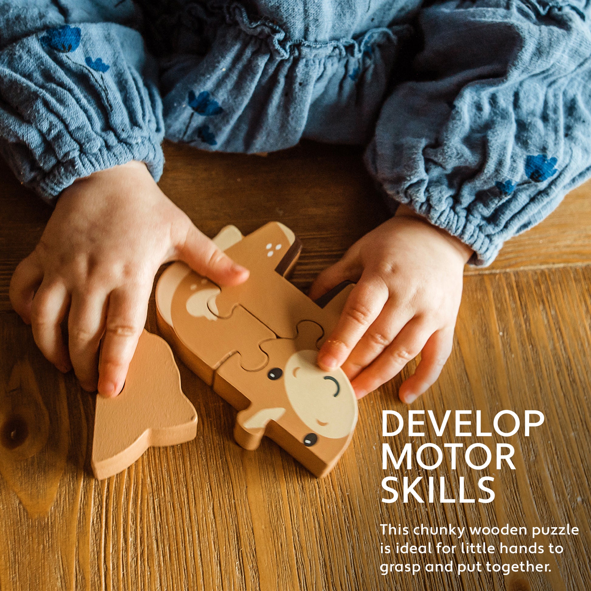 The completed character is also great for imagingative play. The puzzle encourages key motor skills such as hand-eye coordination and shape recognition.